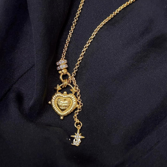 Womens Metal Heart Necklace And Bracelet Set