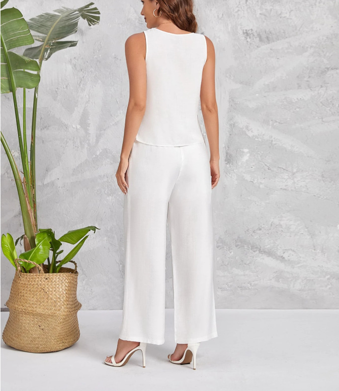 Womens Vest Top And Casual Fashion Wide-Leg Pants Set
